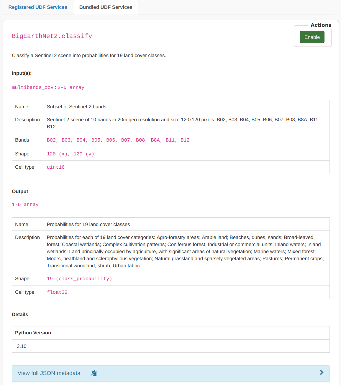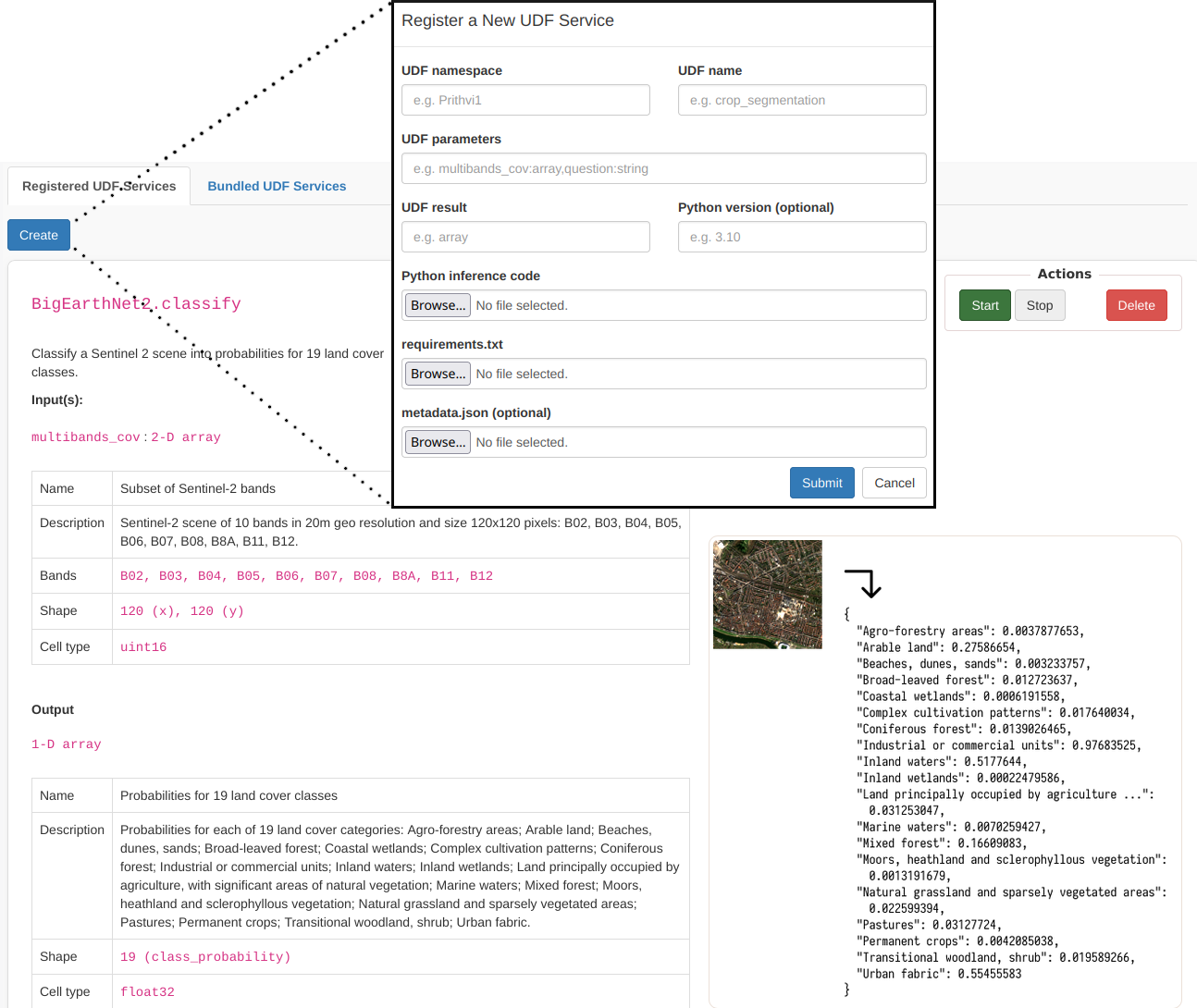 Localhost only. Python-based AI models run as independent HTTP services. They are managed by rasdaman and accessed only internally through UDFs in queries. |